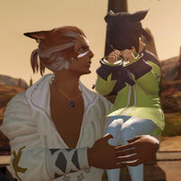 At age 26, she sets her plan in motion. With her father's permission, she embarks towards Gridania. Her relationship with her father at this point is still complicated, yet she sends him trinkets and letters to update him on how she's been doing. With her skill in the bow, she gained the bard jobstone, furthering her love for singing and combat.She was drinking in a tavern, singing along, when she noticed a conjurer that looked familiar but out of place in that tavern. “Rich” was the first word she thought of. Curious, I’liani approaches and tries her hand to get free drinks out of the rich-looking miqo’te, Beah Magoa. However, interactions with her frustrated I’liani.I’liani would frequently bump into her as they accepted similar quests. They started to adventure together out of convenience, which led to rainy fights, late-night travels, and getting out of bad situations together. Their party for convenience became a deep-seated bond.At some point, she found out she was one of the chosen 'Warriors of Light', Beah being the other one and many others out there. I’liani took her responsibility for saving Eorzea seriously. She told her father right away through her letters and hoped for strong approval from him, but she didn't receive a letter back.