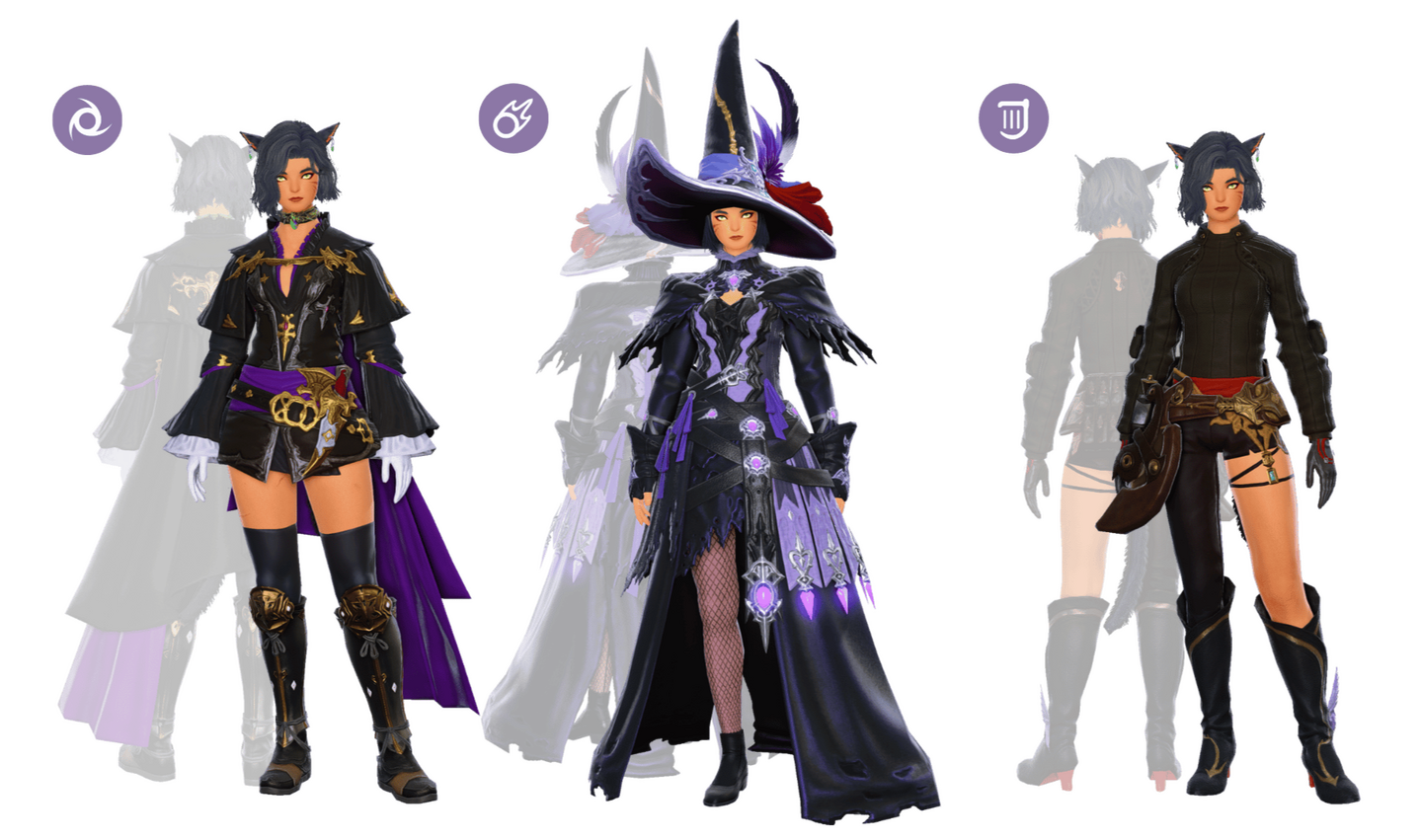 Being the Warrior of Light, she had the connections to get to Limsa Lominsa. The sea breeze and the white buildings were everything she dreamed of. She hurried to finish her current duties, then spent her free time looking for her mother and doing some odd jobs to kickstart her theater career.While she continued her adventures, she noticed her eyesight declining, letting her miss her shots more frequently.During the night, when she couldn't sleep, she would walk across the docks of Limsa Lominsa.One fateful night caused her to stumble into the Dutiful Sisters. Joining the rogue's guild, she banded together with V’kebbe and Perimu, harnessing great skill with the daggers. This led her to put down the bow she once proudly used. Her mastery of the knife would also lead her to Oboro, where she would gain the ninja jobstone and the power of ninjutsu.At one point, she felt affection for the guild's chief, Jacke Swallow. A drunken night with the two led them into each other's arms and a passionate relationship.