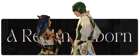Being the Warrior of Light, she had the connections to get to Limsa Lominsa. The sea breeze and the white buildings were everything she dreamed of. She hurried to finish her current duties, then spent her free time looking for her mother and doing some odd jobs to kickstart her theater career.While she continued her adventures, she noticed her eyesight declining, letting her miss her shots more frequently.During the night, when she couldn't sleep, she would walk across the docks of Limsa Lominsa.One fateful night caused her to stumble into the Dutiful Sisters. Joining the rogue's guild, she banded together with V’kebbe and Perimu, harnessing great skill with the daggers. This led her to put down the bow she once proudly used. Her mastery of the knife would also lead her to Oboro, where she would gain the ninja jobstone and the power of ninjutsu.At one point, she felt affection for the guild's chief, Jacke Swallow. A drunken night with the two led them into each other's arms and a passionate relationship.